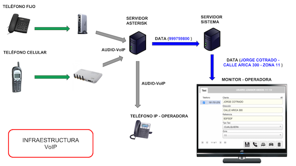 La Operadora puede conocer antes de levantar el auricular (timbrado) los datos personales del Cliente (Nombres, Dirección, Nº de Pedidos) que realizo la llamada; ya sea, que el Cliente llamo al telefono fijo o celular del Radio Taxi esto debido a que todo la telefonia esta integrada en el Sistema por medio de la Telefonía IP.