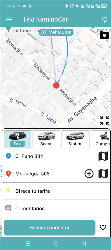 Un aplicativo disponible para Android o Iphone, por medio del cual el Cliente puede realizar pedidos de Taxi. El Cliente puede ver en tiempo real los taxistas mas cercanos a su posición. El Cliente puede ver los datos personales (foto, nombres, placa, unidad y color del vehiculo) del taxista que acepto el servicio de taxi. El Cliente puede ver en tiempo real como el Taxista llega a su posición. Otras funciones que ayudan en administrar los pedidos de taxis.